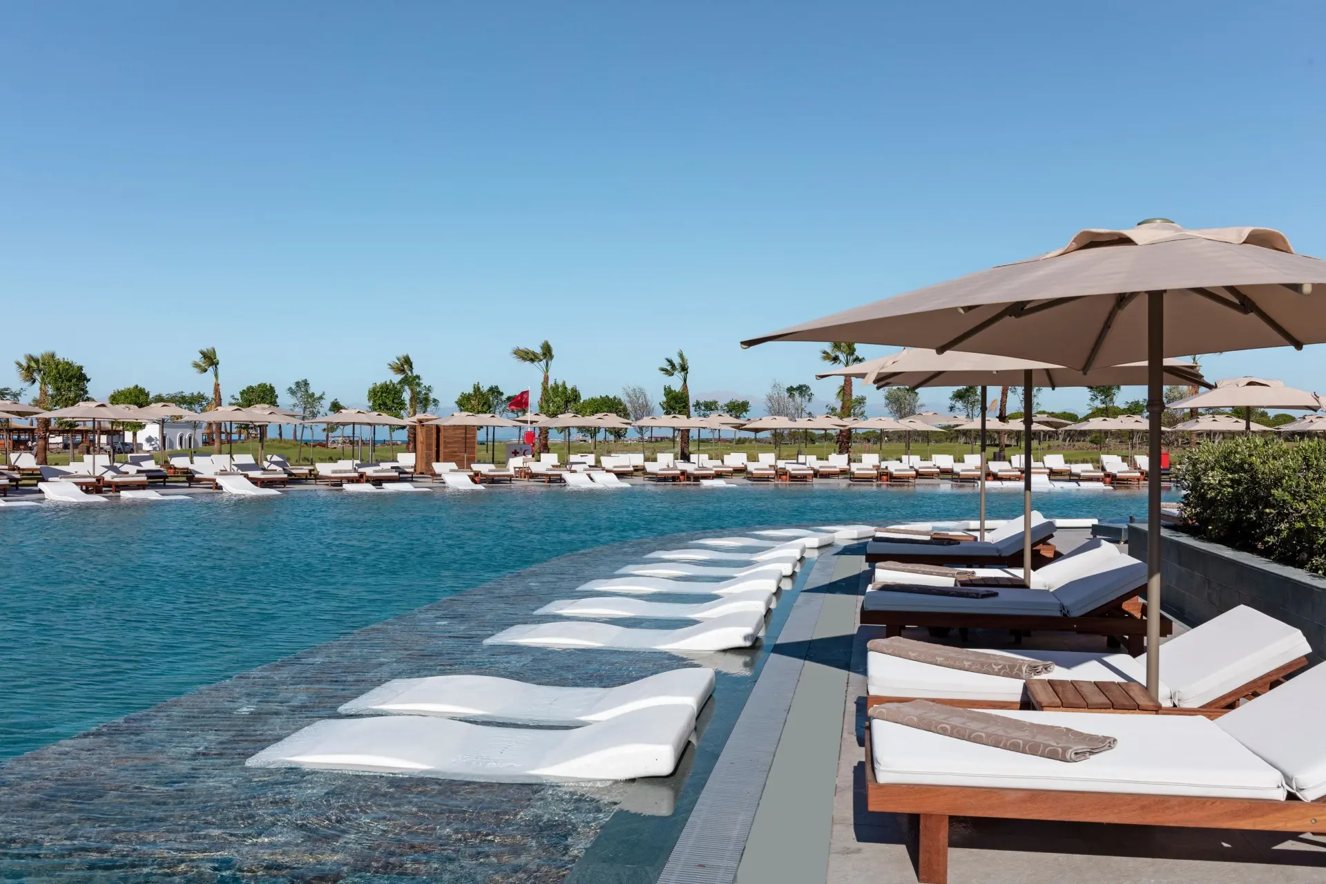 Jedinečným benefitom je súkromná pláž s jemným bielym pieskom, vlastné golfové ihrisko priamo pri hoteli a aquapark, ktorý ocenia najmä rodiny. Len niekoľko minút od rezortu sa nachádza aj ďalšie špičkové ihrisko Tat Golf Belek, čo umožňuje variabilné golfové programy počas pobytu.