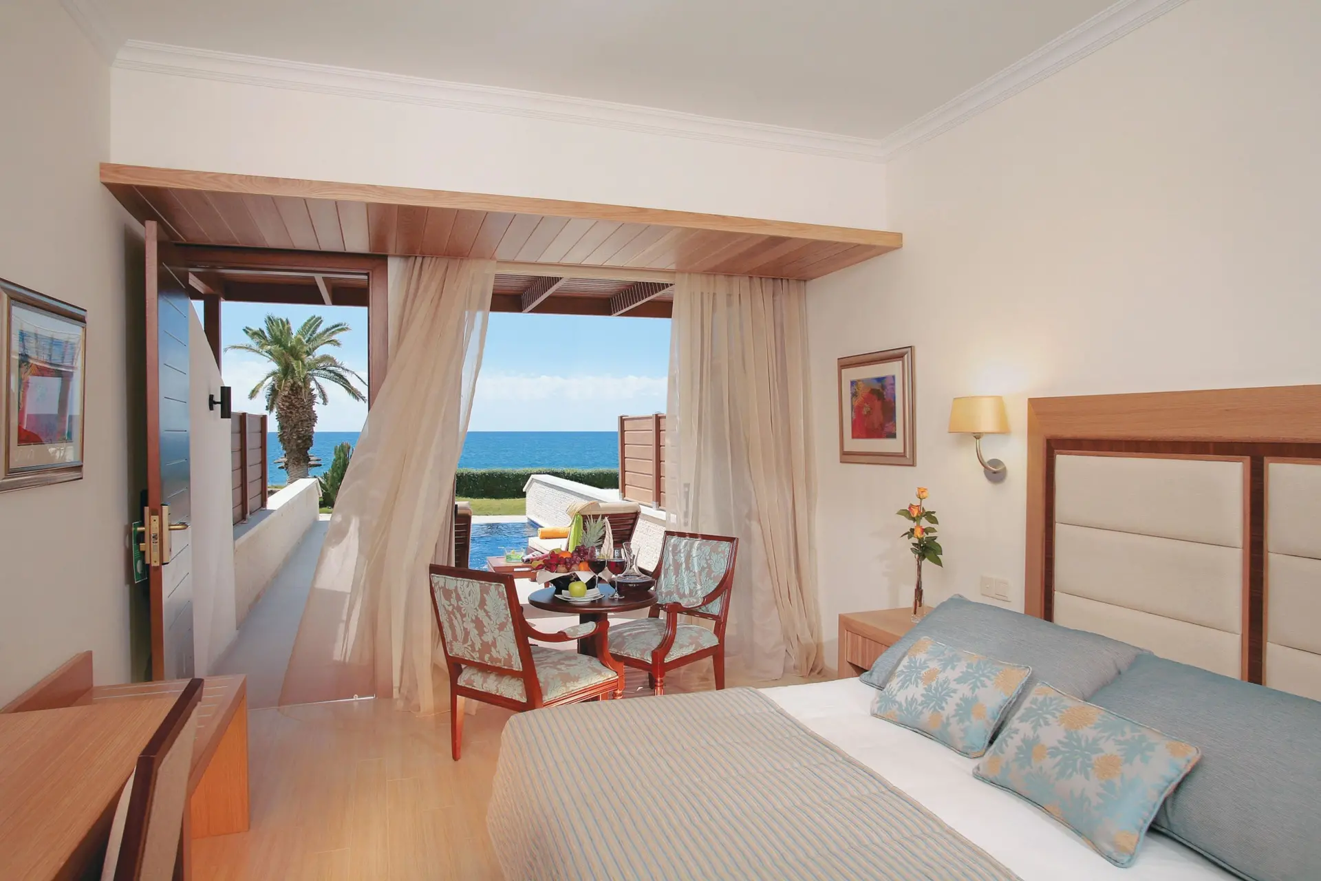 Hotel Alexander The Great Beach disponuje 202 elegantne zariadenými izbami a suitami, ktoré spájajú komfort moderného dizajnu s panoramatickými výhľadmi na Stredozemné more a okolie. Ponuka zahŕňa štýlové deluxe izby s balkónom, priestrannejšie superior izby a exkluzívne Superior Garden Cabanas s možnosťou súkromnej záhrady či vlastného bazéna, ideálne pre dospelých hľadajúcich pokoj a súkromie. Pre rodiny alebo väčšie skupiny sú k dispozícii deluxe family izby, zatiaľ čo Royal Penthouse Suite poskytuje maximálny priestor a luxus s panoramatickou terasou a výhľadmi na more. Všetky jednotky sú vybavené klimatizáciou, Wi‑Fi, TV, bezpečnostnou schránkou a moderným kúpeľňovým vybavením pre pohodlný a bezstarostný pobyt pri mori.