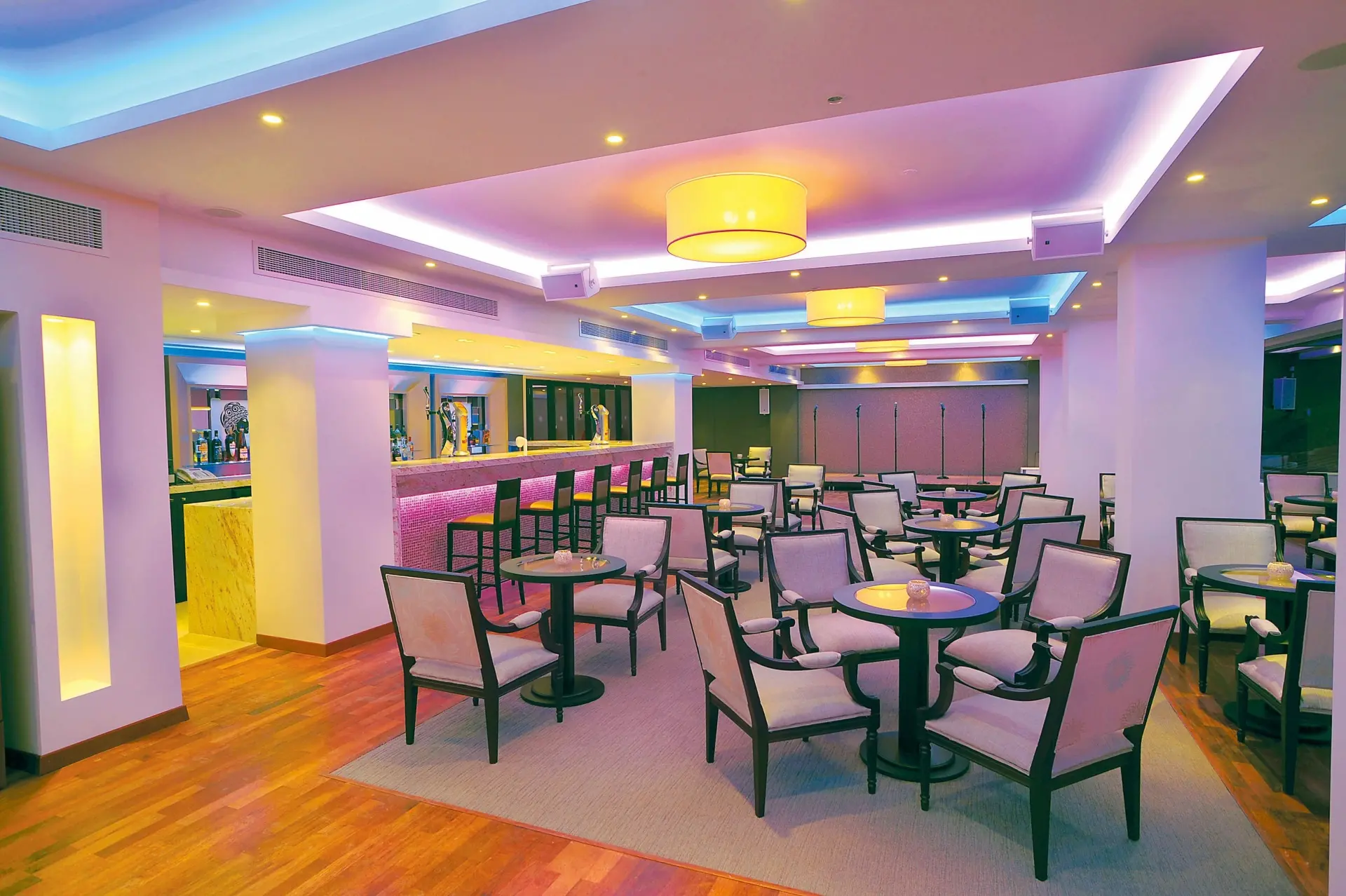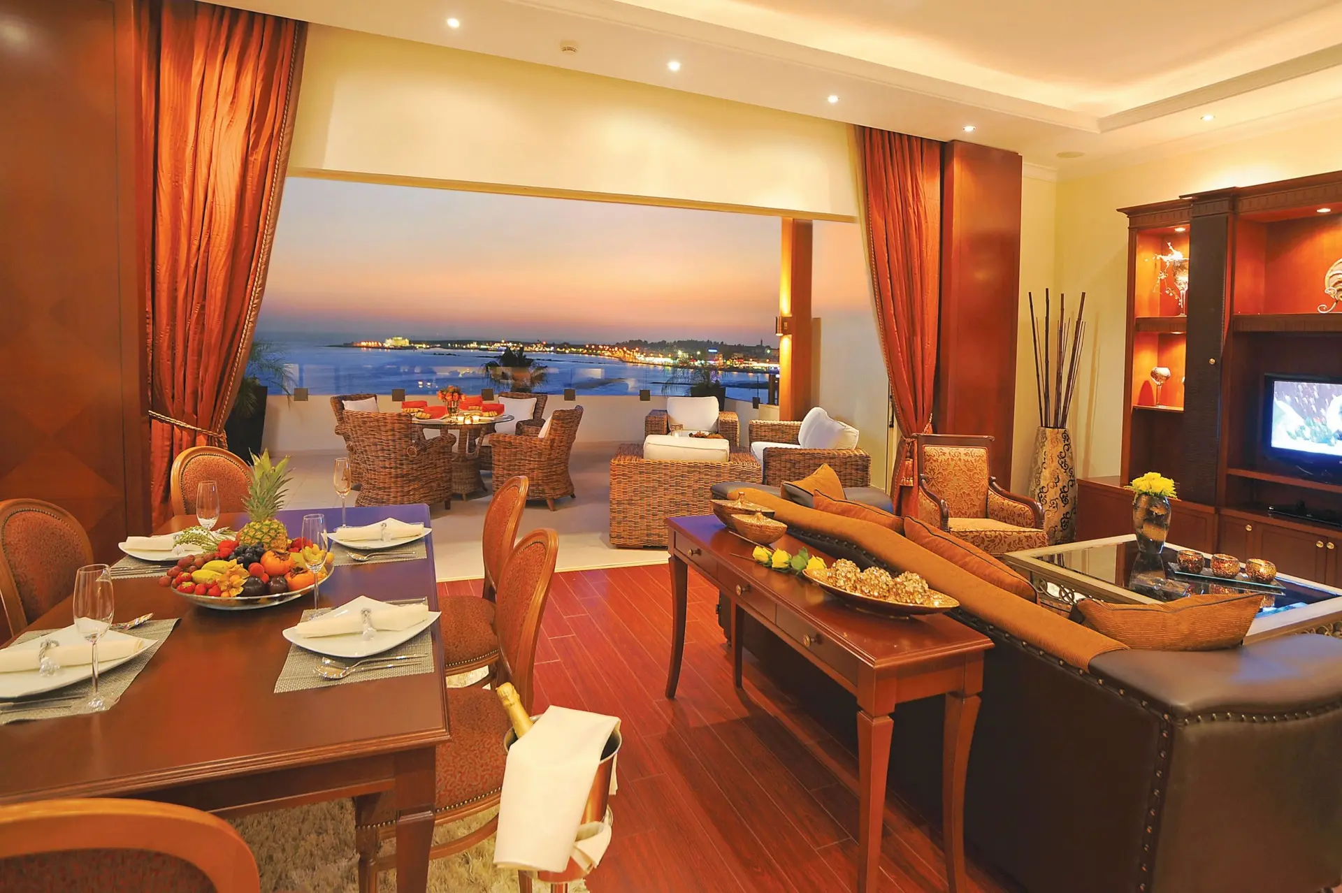 Rezort ponúka polpenziu , ktorá je starostlivo navrhnutá tak, aby uspokojila všetky chute a doplnila váš komfortný pobyt pri Stredozemnom mori. Hlavná bufetová reštaurácia Roxane servíruje bohaté raňajky a večere s pravidelnými tematickými večerami a živým varením, zatiaľ čo ďalšie à la carte reštaurácie – tradičná Limanaki Greek Tavern, exotická Seven Orchids Pan Asian a elegantná Garibaldi Ristorante Italiano (len pre dospelých) – ponúkajú rôznorodé kulinárske zážitky počas týždňa (v závislosti od obsadenosti a rezervácie vopred). V rezorte nájdete aj lounge bary, swim‑up bar pri bazéne a Café Royal s možnosťou občerstvenia a nápojov počas dňa, takže si môžete vychutnať príjemné chvíle pri drinku či ľahkom snacku bez ohľadu na to, kde práve relaxujete.