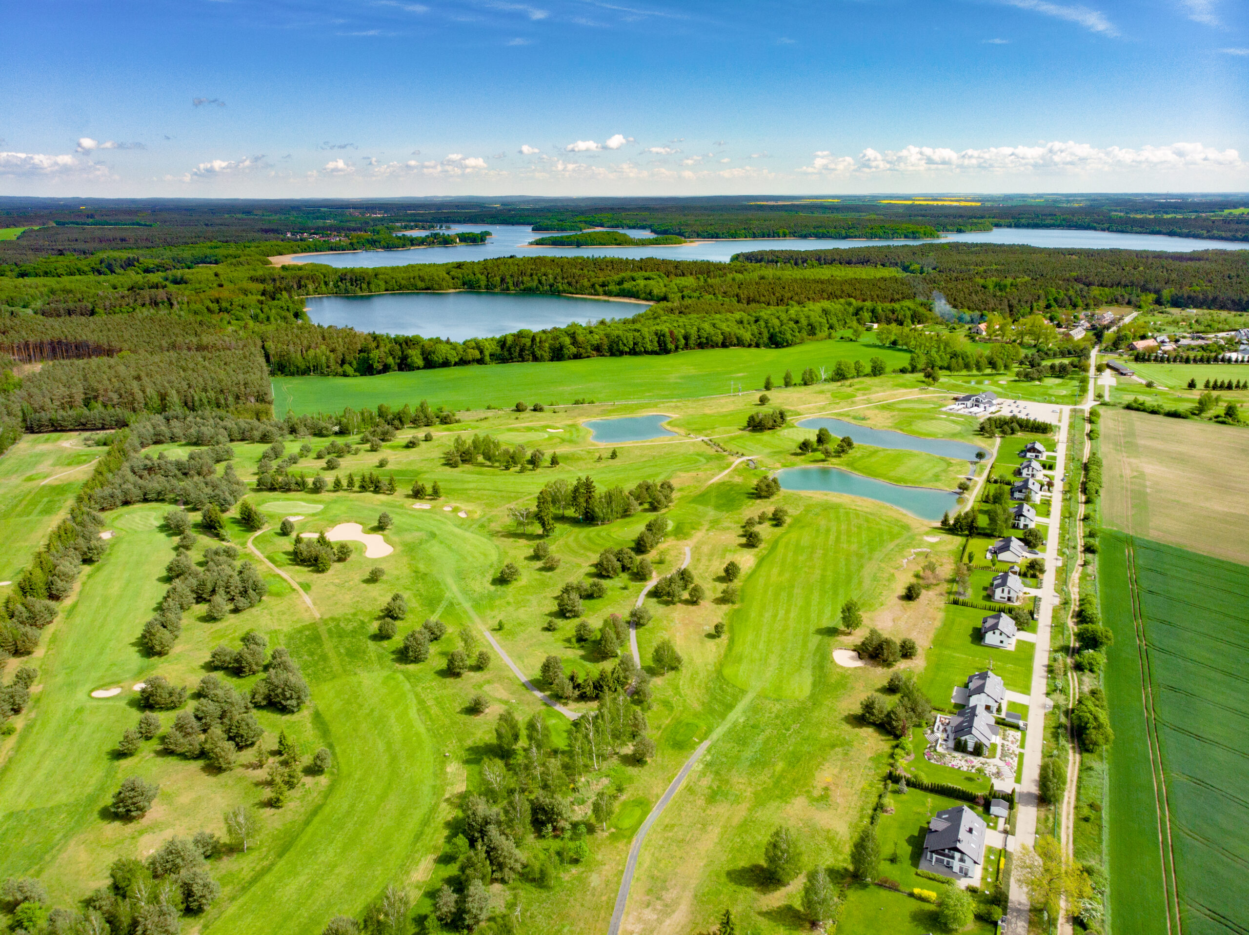 Kalinowe Pola Golf Resort je elegantný golfový rezort v západnom Poľsku, ideálny pre klientov, ktorí vyhľadávajú spojenie kvalitného golfu, komfortného zázemia a pokojného pobytu v prírode. Situovaný je v oblasti Kalinowo pri Skąpe, uprostred malebnej krajiny Lubuského jazerného regiónu, kde vytvára harmonické prostredie ďaleko od mestského ruchu, no zároveň s pohodlnou dostupnosťou. Práve jeho pokojná poloha, otvorený priestor a prírodný charakter robia z rezortu atraktívne miesto pre oddychový aj golfový pobyt. Dominantou rezortu je kvalitné 27-jamkové golfové ihrisko, ktoré je podľa oficiálnej prezentácie rezortu jediným ihriskom svojho druhu v krajine. Rozdelenie na tri odlišné 9-jamkové časti – Woodland, Parkland a Links – prináša rozmanitý herný zážitok a umožňuje hosťom zažiť rôzne štýly hry v rámci jedného areálu. Vďaka tomu je rezort atraktívny nielen pre skúsených hráčov, ale aj pre rekreačných golfistov, ktorí ocenia pestrosť, scenériu a technickú variabilitu ihriska. Celkový golfový zážitok dopĺňa aj veľmi kvalitné tréningové zázemie, ktoré zahŕňa osvetlenú 6-jamkovú Golf Academy, driving range, chipping green a putting plochy. Rezort tak poskytuje výborné podmienky nielen na samotnú hru, ale aj na tréning, zdokonaľovanie techniky a komfortný viacdňový golfový pobyt v príjemnom prírodnom prostredí.