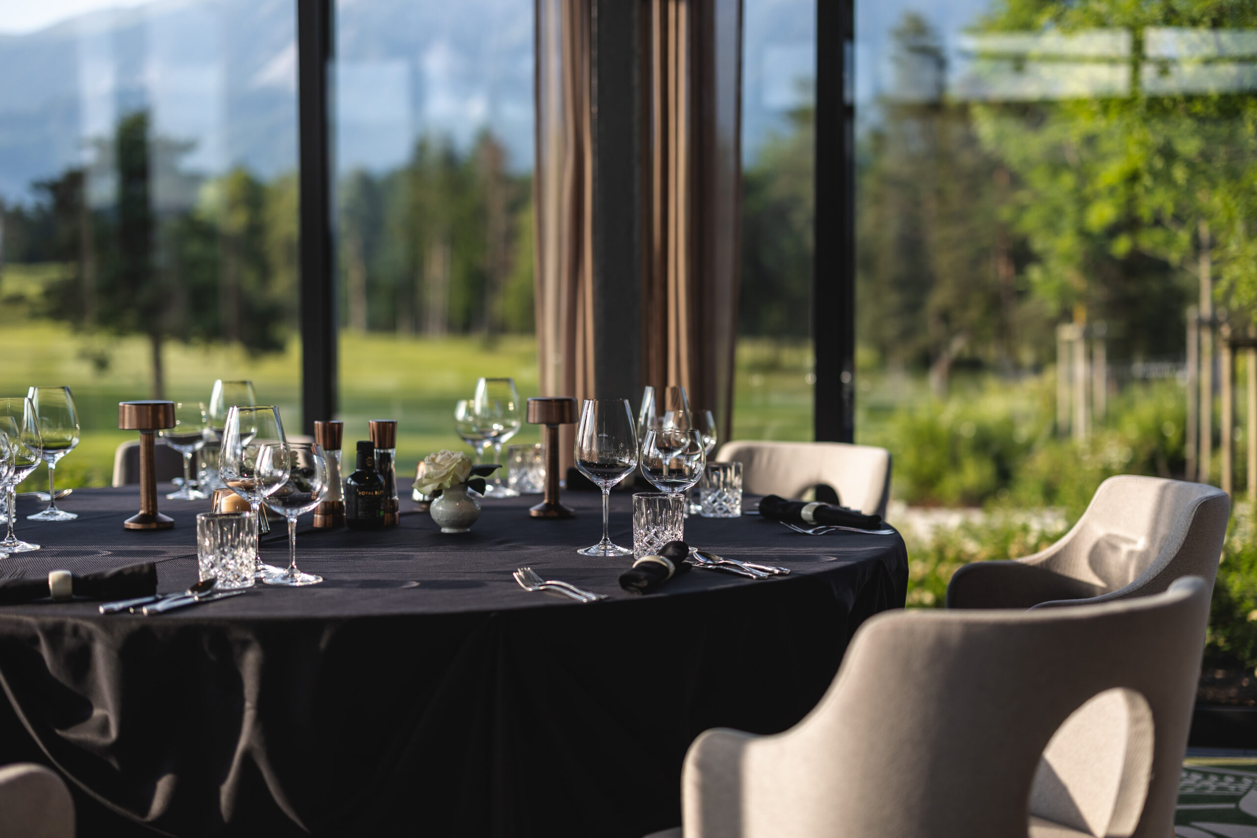 Reštaurácia ponúka exkluzívnu kombináciu slovinskej klasiky a moderných špecialít, pripravených z čerstvých lokálnych surovín. Menu zahŕňa grilované delikatesy, čerstvé cestoviny, krémové rizoto, vegetariánske pokrmy a špeciálne kreácie šéfkuchára, ktoré dotvárajú luxusný kulinársky zážitok po dni strávenom na ihrisku.