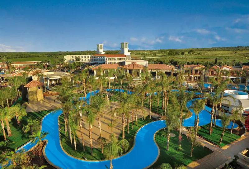 Olympic Lagoon Resorts v Ayia Napa je dokonale navrhnutý raj, samostatný svet s rozľahlými upravenými záhradami a nespočetnými vodnými atrakciami. Ideálny pre rodiny aj páry hľadajúce dokonalý únik, pričom každý prvok dovolenky. Rezort ponúka kompletné vybavenie pre pohodlie a zábavu hostí všetkých vekových kategórií. K dispozícii je elegantná vstupná hala s recepciou, zmenáreň, lobby, úschovňa batožiny a výťahy. Na doplnenie zážitku sú pripravené 4 bary, vrátane baru pre tínedžerov, hlavná hotelová reštaurácia Royal Olympic a tematické reštaurácie – americká, grécka a japonská, ako aj exkluzívna medzinárodná reštaurácia pre dospelých (rezervácia vopred, za príplatok). Pre firemné či súkromné stretnutia je k dispozícii konferenčná miestnosť, terasa s TV, minimarket a herňa pre tínedžerov. Najmenších hostí poteší miniklub. Rozľahlá tropická záhrada rezortu ukrýva 7 sladkovodných bazénov, z ktorých niektoré zdobia vodopády a vírivky, oddelený detský bazén s pirátskou šmýkačkou a lenivou riekou, bar s terasou, lehátka, slnečníky a osušky zdarma, ako aj sprchy pri bazéne. Pre aktívne chvíle aj hry detí je pripravené detské ihrisko priamo v záhrade.