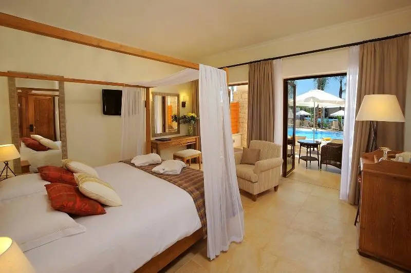 Deluxe izby sú ideálne pre 1–3 osoby a ponúkajú klimatizáciu, bezplatné Wi-Fi, satelitnú TV, minibar a balkón s výhľadom na bazén, záhradu alebo more.