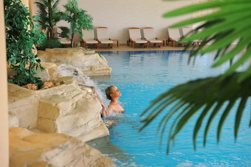 - 5 tematických bazénov: Svet oddychu a rekreácie s piatimi tematickými bazénmi s vodopádmi, tobogánmi, hydrorelaxačnými ležadlami a nulovými vstupmi do bazénov, zasadený do tropického ostrovného prostredia s rozsiahlymi upravenými záhradami, jazerami a krásnymi palmami.