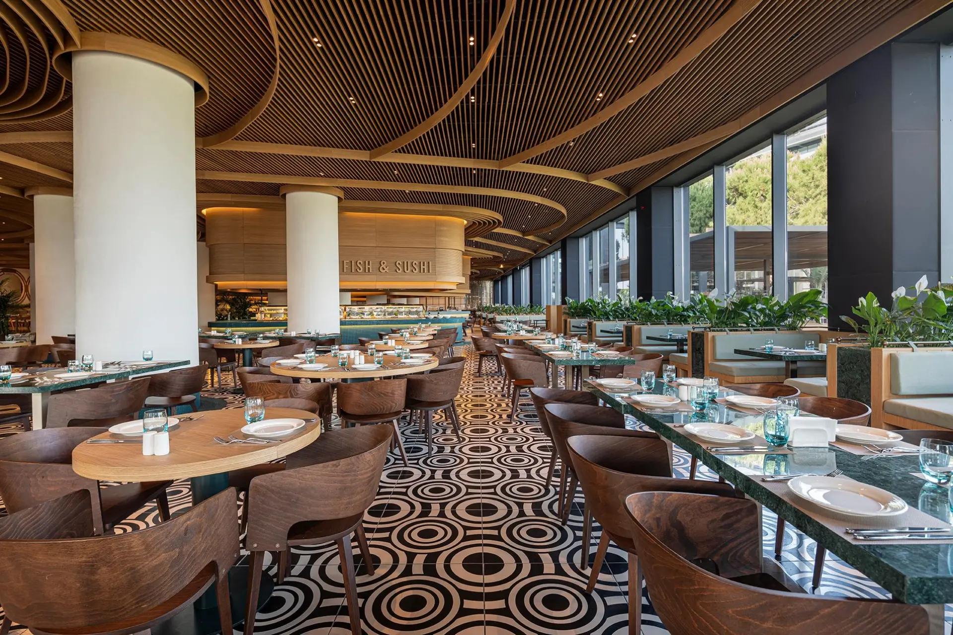 V hoteli sa nachádza 8 à la carte reštaurácií, v ktorých môžu hostia ochutnať to najlepšie z japonskej, čínskej, talianskej, francúzskej, mexickej aj ďalších svetových kuchýň. Široká gastronomická ponuka je ideálna na príjemné večery a zaslúžený oddych po dni strávenom na golfovom ihrisku.